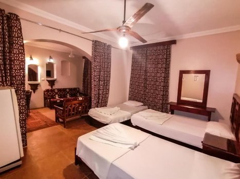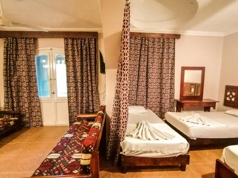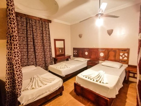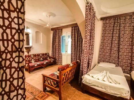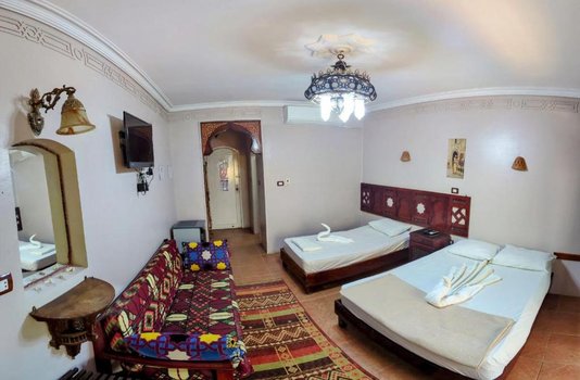 Отель Ali Baba, расположенный в центре залива Дахаб с прекрасным видом на залив Акаба, предлагает гостям возможность насладиться разнообразными активностями на свежем воздухе. Интерьеры отеля выполнены в традиционном арабском стиле с элементами ручной работы из дерева и мебелью, подчеркивающей этнический колорит. Номера и люксы в отеле оборудованы кондиционерами, имеют личные балконы с видом на море, телевизоры с доступом к спутниковым каналам, собственные ванные комнаты и холодильники. Для активного отдыха гостям предоставляется возможность прокатиться на верблюдах, лошадях, пляжных багги и велосипедах. Пляж вблизи отеля идеален для коротких экскурсий, сафари и водных видов спорта. Ресторан отеля, с панорамным видом на залив, предлагает блюда международной и местной кухни, создавая уникальное гастрономическое впечатление. Представьте, что вы начинаете утро с завтрака на балконе вашего номера, наслаждаясь видом на спокойные воды залива Акаба. Затем вы отправляетесь на увлекательную прогулку на верблюде по пляжу, ощущая тепло солнца и прохладу морского бриза.