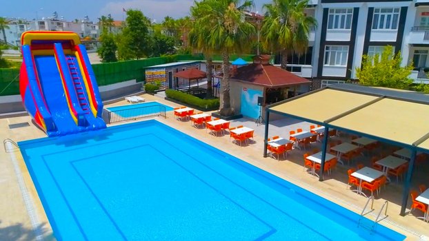 Andros Family Club 3* - это апарт-отель, который находится на берегу Средиземного моря, в 1,5 км от исторического города Сиде. Добраться до международного аэропорта в Анталье занимает примерно час. Для удобства гостей, отель предлагает бесплатный автобус до пляжа, который находится в 1,5 км, дважды в день. Апарт-отель состоит из двух четырехэтажных зданий, в которых располагаются 46 уютных апартаментов. Каждый апартамент оборудован просторным балконом, спальней, гостиной и кухней. Все номера оснащены кондиционером, телевизором с кабельными каналами, мини-баром, ванной комнатой с душем и феном, рабочим столом и бесплатным Wi-Fi. На территории отеля функционирует ресторан с открытой террасой, где гостям предлагают трехразовое питание по системе "шведский стол" и a la carte. В меню представлены блюда турецкой и международной кухни, а также прохладительные напитки и десерты. Гостям доступны два открытых бассейна с лежаками и зонтиками, детская игровая площадка, бизнес-центр, камера хранения, спа-центр, прачечная, пункт обмена валют, прокат автомобилей и бесплатная стоянка. На пляже можно заняться различными видами водного спорта, дайвингом, виндсерфингом, пляжным волейболом и мини-футболом. Итак, представьте, что вы приехали в Andros Family Club. Утро начинается с завтрака на террасе с панорамным видом на Средиземное море. Затем вы отправляетесь на пляж, где можете попробовать себя в водном спорте или просто наслаждаться солнцем и морем. После обеда - время для отдыха у бассейна или посещение спа-центра. Вечер можно завершить ужином в ресторане и прогулкой по историческому городу Сиде. Все это делает Andros Family Club идеальным местом для семейного и молодежного отдыха.
