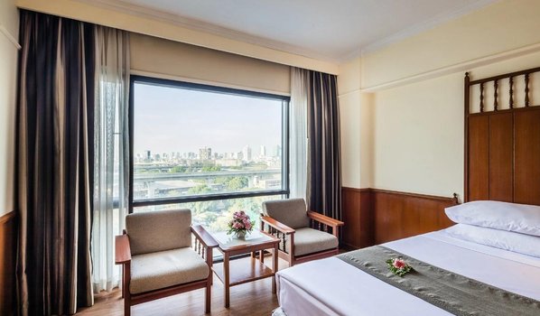 Отель Bangkok Palace расположен в районе Пратунам, который находится в 2 км от станции метро Phetchaburi. Гостям предлагаются комфортабельные номера, просторный открытый бассейн и ресторан, работающий круглосуточно. Расстояние от отеля до оптового рынка Пратунам составляет всего 10 минут пешком, до ночного базара Суан Лам — 2,7 км, а до международного аэропорта Суварнабхуми — 22,5 км. Каждый номер в отеле оборудован кондиционером, телевизором, мини-баром и собственной ванной комнатой с ванной. Для активного отдыха в отеле предусмотрены бассейн и фитнес-центр. Также есть экскурсионное бюро, где гости могут заказать туры по интересным местам города. Ресторан Makkasan предлагает разнообразие блюд традиционной тайской кухни. В кафе отеля можно насладиться выпечкой, домашним мороженым и горячими напитками. Представьте, что вы прогуливаетесь по живописным улицам района Пратунам, затем возвращаетесь в отель для отдыха у бассейна или занятий в фитнес-центре, завершая день ужином в ресторане с традиционными тайскими блюдами.