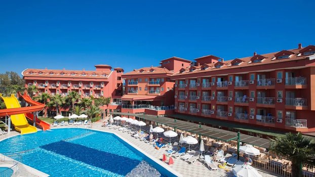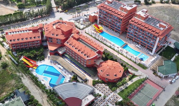 Отель в Сиде окружён зелёной территорией и расположен в 400 метрах от моря. Путь до пляжа занимает около 5-7 минут пешком или можно воспользоваться шаттлом от отеля. Пляж просторный, с мягким песком и удобным входом в воду. На территории есть два бассейна с горками, а также детский бассейн. Гостям отеля доступны номера в двух корпусах. В недавно построенном корпусе номера обновлены, в старом корпусе лучше работает Wi-Fi, так как он ближе к ресепшен. Питание организовано в главном ресторане с "шведским столом" и двумя ресторанами с блюдами османской кухни и морепродуктами. В отеле также работают несколько баров, включая пляжный, и закусочная у бассейна. Для детей предусмотрен отдельный буфет и игровая зона. Анимационная программа охватывает развлечения для взрослых и детей. Днём проходят спортивные игры и водные активности, а вечером — шоу-программы, живая музыка и дискотека до ночи. На территории также есть теннисный корт и площадки для футбола и баскетбола. Недалеко от отеля расположены магазины и рынок, а всего в 200 метрах — остановка маршрутного такси, на котором удобно доехать до центра Сиде и местных базаров.