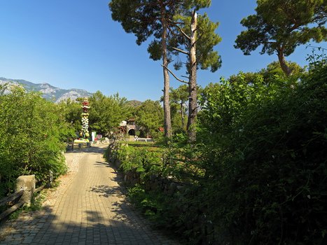 Отель Holiday Area Farm Resort 5* находится на побережье Средиземного моря, окруженный живописным парком. Уникальный стиль комплекса гармонирует с природой, создавая атмосферу спокойствия и уюта. Это место подходит для романтического, молодежного и семейного отдыха. В нескольких метрах от отеля раскинулся просторный песчаный пляж, где гости могут наслаждаться морем и солнечными ваннами. Дайвинг-центр на пляже предлагает подводные погружения, подходящие даже для новичков. Для детей доступны прогулки на лошадях, которые проходят под присмотром опытных инструкторов. В отеле также есть амфитеатр, где проводятся интересные представления. Ресторан оформлен в охотничьем стиле и предлагает блюда турецкой кухни и разнообразные десерты. Оказавшись в Holiday Area Farm Resort, вы можете начать с завтрака на свежем воздухе, наслаждаясь видами на парк. После этого можно отправиться на пляж, чтобы провести время у моря или поучиться дайвингу. Дети катаются на лошадях и знакомятся с окружающей природой, получая новые впечатления. Вечером можно собраться в амфитеатре, чтобы посмотреть шоу-программу, а затем поужинать в ресторане, пробуя местные блюда. Гости могут заказать экскурсии, чтобы увидеть красивые пейзажи побережья и посетить интересные достопримечательности. Рядом с отелем находятся кафе, магазины и другие места, где можно приятно провести время.