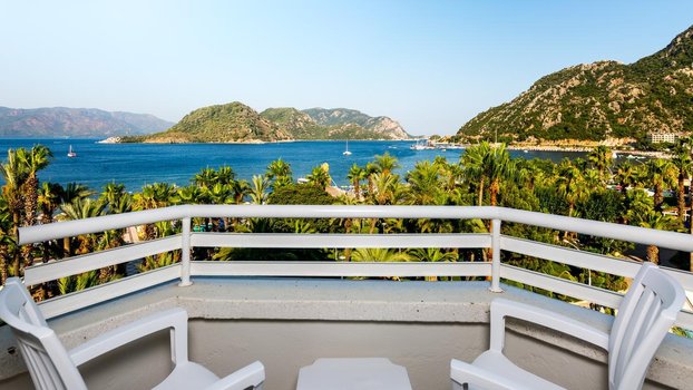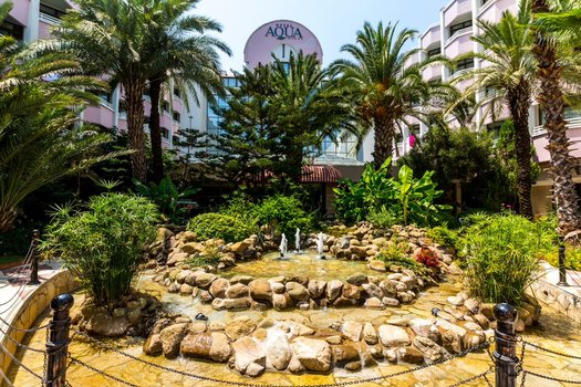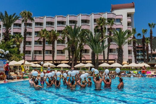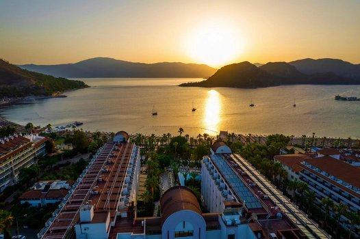 Отель Aqua 5* находится в 7 км от центра Мармариса и всего в 1 км от поселка Ичмелер. Он расположен на побережье, рядом с морем, на красивой территории с зелеными садами и цветущими растениями. Здесь созданы удобные условия для отдыха, а номера оснащены современным оборудованием. Отель предлагает 216 стандартных номеров площадью 20 кв. м с двуспальной или двумя односпальными кроватями, откуда открываются виды на сад и горы. Также есть 29 просторных семейных номеров площадью 42 кв. м, которые состоят из двух отдельных комнат — спальни и гостиной. Инфраструктура включает салоны красоты, SPA-зону, спортивные занятия и услуги для детей. Гости могут заниматься спортом, расслабляться в спа или наслаждаться природой вокруг. Отель подходит для пляжного отдыха, семейных путешествий и романтических поездок. Представьте, что вы оказались в отеле Aqua. Утро начинается с вида на зелёные холмы и яркие цветы. Завтрак проходит в уютной атмосфере с блюдами местной и интернациональной кухни. Днём можно отправиться на пляж, наслаждаясь чистой водой и солнцем, или заняться водными видами спорта. Пешеходная прогулка по Ичмелеру откроет доступ к местным лавкам, где можно найти сувениры и отведать турецкие блюда. Вечером, вернувшись в отель, гости могут расслабиться в SPA или насладиться живой музыкой в одном из баров. Недалеко от отеля находятся различные достопримечательности. Можно посетить древний город Эфес, прогуляться по набережной Мармариса или исследовать местные базары. В отеле всегда найдутся развлечения для любого возраста и интересов.