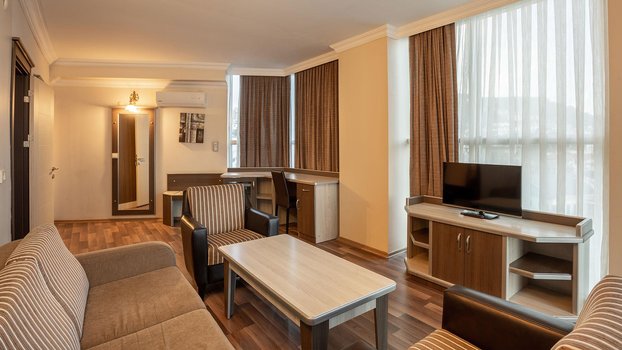 Отель находится в поселке Каргыджак, в 14 км от Алании и в 143 км от аэропорта Анталии, что делает его удобным для семейного отдыха. Комплекс представляет собой шестиэтажное здание на территории площадью 8 000 м². Гостям предлагаются стандартные номера, семейные комнаты и люксы. Во всех номерах выполнен качественный ремонт, установлена современная мебель, поддерживается чистота. Из окон можно увидеть бассейн, море, горы или окрестности. Номера, расположенные с противоположной стороны от моря, более тихие, так как там не слышно анимации и шума дороги. До пляжа около 150 метров, путь к морю проходит через подземный переход под дорогой. Пляж небольшой, с песчано-галечным покрытием и пологим входом в воду. Для удобства гостей есть пирс, а на пляже работает бар, где можно взять напитки и перекусить. В отеле работают главный ресторан, ресторан а ля карт и несколько баров. Большинство гостей положительно отзываются о питании, отмечая разнообразие и качество блюд. Очереди в ресторане — редкость, а мест за столиками всегда хватает. На территории отеля есть два открытых бассейна, детский бассейн и водные горки для детей и взрослых. Анимационная программа активная, но не навязчивая. Для взрослых организуются спортивные игры и занятия у бассейнов и на пляже, есть дартс, стрельба из лука, тренажерный зал и СПА-центр. Вечером гости могут посетить шоу и дискотеку. Для детей работают мини-клуб, игровая площадка и книжный уголок. Рядом с отелем находится торговый центр, а автобусы до Алании отправляются каждые 15 минут. Представьте, как вы просыпаетесь в тихом номере с видом на горы, проводите день на пляже или у бассейна, наслаждаетесь вкусными блюдами в ресторане, а вечером смотрите шоу или отправляетесь на прогулку по окрестностям.
