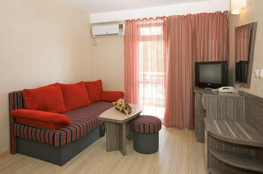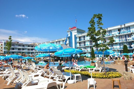 Отель Kotva расположен на южном побережье в районе Солнечного берега, в пяти минутах ходьбы от пляжа. До моря ведёт прямая дорога, по пути находятся кафе, магазины и остановка общественного транспорта. На пляже можно взять напрокат шезлонги и зонты, а также заняться водными видами спорта — катанием на водных лыжах, парасейлингом или дайвингом. Номера отеля оформлены в светлых тонах. В каждом есть кондиционер, телевизор, мини-бар, ванная комната с душем и феном. Из многих комнат открывается вид на бассейн или внутренний двор. Интернет Wi-Fi предоставляется за дополнительную плату. На территории расположены два открытых бассейна, один из них детский. Гости могут посетить фитнес-центр, поиграть в теннис, дартс или бильярд. Для детей предусмотрены игровая площадка и клуб, где проходят занятия и игры. В ресторане отеля подают блюда болгарской и европейской кухни, а в баре предлагают прохладительные напитки. Для желающих отдохнуть предусмотрены сауна, массажный кабинет и парикмахерская. Есть бизнес-услуги, конференц-зал и охраняемая парковка. Если вы окажетесь в Kotva, утро можно начать с завтрака на террасе и прогулки до моря. Днём приятно отдохнуть у бассейна или отправиться в Несебр, расположенный всего в трёх километрах. После прогулки можно поужинать в ресторане, попробовать блюда болгарской кухни и завершить день вечерней прогулкой по набережной. Отель подойдёт для отдыха с детьми, путешествия вдвоём или спокойного летнего отпуска у моря.
