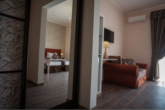 Гостевой дом "Озеро сновидений" находится в Евпатории, недалеко от центра города и озера Мойнаки. До песчаных пляжей Евпатории отсюда можно дойти всего за несколько минут — расстояние составляет приблизительно 900 метров. Озеро Мойнаки расположено в 200 метрах от гостевого дома, предлагая живописные виды и спокойную атмосферу. Гостевой дом способен разместить 90 посетителей и построен из экологичных материалов. Гостям предлагаются различные категории номеров: от "люкс" до "стандарт мансарда". В каждом номере есть кондиционер, собственный санузел с душем, холодильник, телевизор и доступ в интернет. На территории гостевого дома функционирует медицинский центр, специализирующийся на бальнеологических процедурах, использующих лечебные грязи и минеральные воды. Также здесь есть спа-центр, бассейн с джакузи, а также места для массажа и косметических процедур. Для любителей активного отдыха предусмотрены теннисные корты и игровая площадка для детей. В гостевом доме регулярно проходят развлекательные программы, а также возможен заказ экскурсий по окрестностям. Представьте, что вы оказались в "Озере сновидений". Вы начинаете день с завтрака в местном ресторане, а затем отправляетесь на прогулку по набережной им. Горького или в парк им. Фрунзе, расположенные всего в километре от вашего временного дома. День обещает быть наполненным: от расслабляющих процедур в спа до вечерней прогулки у озера, заканчивая днем ужином при свете заката. Такое расположение позволяет гостям наслаждаться как культурной программой города, так и уединением у воды.