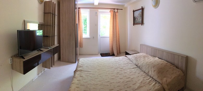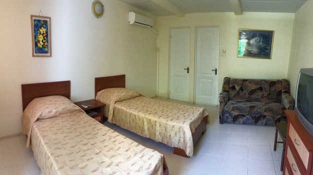 Пансионат «Песчаный берег» находится в поселке Любимовка, всего в 15 минутах езды от Севастополя. Рядом с пансионатом расположены продуктовые магазины, аптеки и автобусные остановки. Вдоль побережья работают кафе и аттракционы. Расстояние до железнодорожного вокзала Севастополя составляет 25 километров, до аэропорта Симферополя — 90 километров. Территория пансионата благоустроена и расположена на первой линии. Комплекс включает два спальных корпуса (двухэтажный и одноэтажный), два финских дома и девять коттеджей. Гостям предлагаются номера категории Комфорт и Апартаменты. Во всех номерах есть санузел с душем, кондиционер, телевизор и холодильник. Номера оснащены меблированными балконами или террасами. В Апартаментах имеется веранда и мини-кухня с обеденной зоной. На территории пансионата работают кафе и пиццерия, есть зона для барбекю, а также столовая в шаговой доступности. Гостям предоставляется бесплатный Wi-Fi на всей территории и в номерах, охраняемая автостоянка, детская площадка, настольные игры и литература для досуга. Любители активного отдыха могут воспользоваться волейбольной площадкой и настольным теннисом. Ежедневно организуются волейбольные игры, а для детей работают аниматоры, которые проводят вечерние дискотеки и игровые программы. В кафе есть игровая площадка для детей, а также предоставляются стульчики для кормления. Всего в нескольких минутах ходьбы от пансионата расположен песчано-галечный пляж с пологим входом в воду. На пляже можно арендовать лежаки, шезлонги и зонтики. Если бы вы оказались в этом пансионате, утро могло бы начаться с прогулки по побережью и завтрака в местном кафе. После этого можно было бы провести день на пляже, наслаждаясь морем и солнцем, а вечером посетить одну из местных дискотек или прогуляться по набережной, где работают кафе и аттракционы.