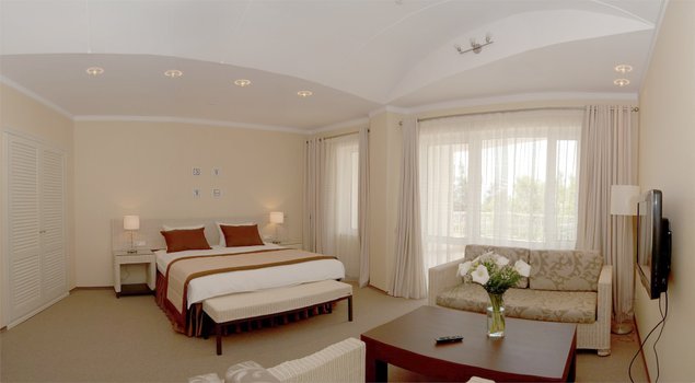 Спа-отель «Приморский парк» расположен на Южном берегу Крыма, в центральной части Ялты, и является продолжением Ялтинской набережной. В шаговой доступности находятся основные развлекательные места города. До нижней станции канатной дороги и замка Ласточкино Гнездо можно добраться за 20 минут. Дорога до аэропорта Симферополя занимает около полутора часов. Отельный комплекс расположен на благоустроенной территории на первой береговой линии, протяженностью два километра. Спа-отель включает четыре многоэтажных корпуса с лифтами. Гостям предлагаются 45 комфортабельных номеров категорий Полулюкс, Люкс, Делюкс, Студио и 6 просторных Апартаментов. Интерьеры номеров выполнены в современном стиле с использованием холодных пастельных оттенков. Все комнаты оснащены кондиционерами и необходимой бытовой техникой, а в апартаментах и некоторых номерах есть мини-кухни. С балконов открывается вид на море или Приморский парк. В отеле работает ресторан «ФабрикантЪ» и летняя веранда. Гостям доступны два бассейна: открытый с подогревом и крытый с морской водой. В спа-центре можно посетить несколько видов бань, включая грязевую, соляную, русскую парную, травяную и финскую сауны, а также хаммам и джакузи. Для активного отдыха предусмотрен тренажерный зал. На территории отеля доступен беспроводной интернет и охраняемая парковка. Для проведения деловых мероприятий имеется современный конференц-зал на 60 человек. Для детей организована игровая зона в ресторане, а также доступна аренда детских кроваток. В двух шагах от корпусов отеля находится мелкогалечный пляж, оборудованный раздевалками, душевыми, навесами, шезлонгами и лежаками. Если бы вы остановились в спа-отеле «Приморский парк», ваш день мог бы начаться с завтрака на летней веранде, затем вы могли бы провести время на пляже или в бассейне. Вечером можно было бы посетить спа-центр и отдохнуть в одной из бань или в джакузи.