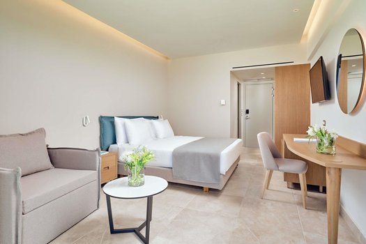 Отель Princess Sun 4* расположен на холме среди соснового леса. С 1989 года он принимает гостей, регулярно обновляя и улучшая условия проживания. Общественный галечно-песчаный пляж находится в 15-20 минутах ходьбы, для удобства курсирует шаттл, который отправляется каждые полчаса с 9:30 до 19:00. На пляже предоставляются зонтики, шезлонги и полотенца. В отеле есть главный корпус в три этажа и дополнительное двухэтажное здание. Для размещения предлагаются номера разных категорий: Double Eco Room (19 м²) в дополнительном корпусе без балкона, Double Room MV/SV (23 м²) с балконом и видом на море или горы, а также Family Room GV/SV (30 м²), включающий спальню и гостиную, разделённые раздвижной дверью. На территории отеля доступен Wi-Fi. Как проходит день в Princess Sun? Гости начинают утро с завтрака на террасе ресторана, наслаждаясь видом на сосновый лес. Затем можно отправиться на пляж, воспользовавшись шаттлом. Здесь отдыхающие проводят время загоранием, купанием или прогулками вдоль берега. После обеда в ресторане отеля можно расслабиться у бассейна или прогуляться по зелёной территории. Вечером приятно провести время на балконе номера с видом на горы или море. Princess Sun открыт для гостей с апреля по октябрь. Это место подойдёт для тех, кто ищет сочетание спокойного отдыха, природы и удобства расположения. Отель привлекает семьи, пары и путешественников, ценящих комфорт и доступ к природным и культурным достопримечательностям Родоса.