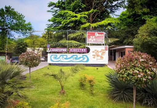 Санаторий «Известия» расположен в парке в Адлерском районе Сочи, окружен субтропическими растениями. Морской берег находится всего в 150 метрах от санатория. Это место идеально подходит для семейного отдыха, влюбленных пар и бизнесменов. В санатории есть конференц-зал и киноконцертное помещение для проведения деловых мероприятий. Гостям предлагаются различные виды досуга: спортивные залы, настольный теннис, библиотека, экскурсии, терренкур, прогулки по парку, киносеансы, караоке и анимационные шоу. В окрестностях санатория также много интересных заведений и аттракционов. В санатории организовано питание в двух залах столовой, расположенной в отдельном здании. Для детей построены игровые площадки, а также предлагаются различные развлечения и аттракционы. Санаторий имеет собственный галечный пляж, оборудованный всем необходимым для комфортного отдыха: кабинками, душевыми, туалетами, лежаками, шезлонгами, навесами и зонтами. На пляже работает кафе, доступны водные аттракционы. Аэропорт находится в 7 км от санатория, вокзал — в 3 км. Море с мелкогалечным пляжем находится в 850 метрах. Вблизи расположены аквапарк «Амфибиус», дельфинарий, океанариум, множество баров, ресторанов и кафе. Центральный рынок, торговые и развлекательные центры находятся в 5,5 км, Олимпийский парк — в 9 км, Красная поляна — в 37 км, парк «Ривьера» — в 23 км.