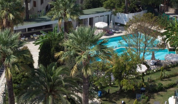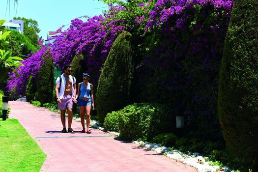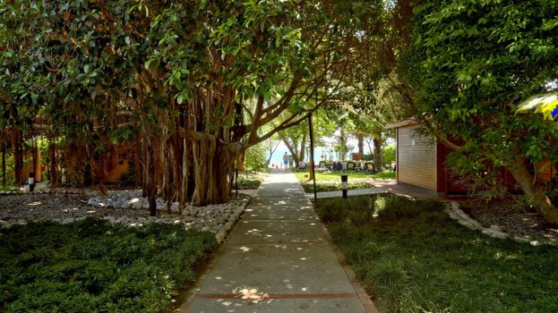 Через территорию отеля.