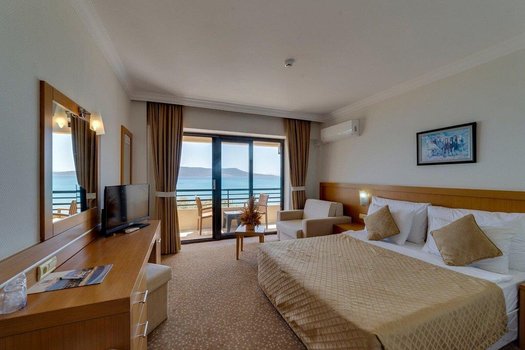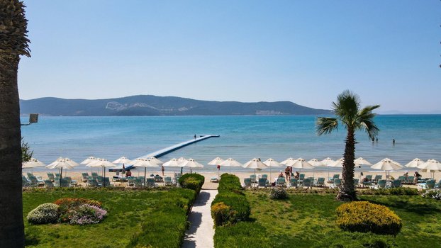 Отель Holiday Resort 4* находится в районе Дидим, прямо у побережья, в нескольких шагах от моря с золотистым песком. Гостиничный комплекс предлагает комфортное проживание, где можно расслабиться в уютных номерах и получить качественное обслуживание. Пляж рядом с отелем привлекает гостей чистой водой и разнообразием водных видов спорта, что делает это место подходящим для семейного отдыха и тех, кто любит активные развлечения. Прогулка по набережной и улицам Дидима откроет перед туристами живописные виды и местные достопримечательности. Рядом расположены многочисленные рестораны, кафе и ночные клубы, где можно попробовать местную кухню и насладиться развлекательными программами, что особенно привлекает молодежь. Представьте себе, как начинается утро в Holiday Resort. Гость просыпается в просторном номере с видом на море. Завтрак проходит на террасе ресторана, где можно попробовать свежие местные блюда. Днём отдых на пляже позволяет наслаждаться морем и принимать участие в таких развлечениях, как катание на водных мотоциклах или виндсерфинг. Детям предложены специальные зоны для игр, что делает отдых удобным для всей семьи. Вечером можно пройтись по набережной, увидеть закат и зайти в один из местных ресторанов, чтобы попробовать блюда турецкой кухни. Те, кто хочет продолжить вечер с музыкой и танцами, могут отправиться в ночные клубы, которые находятся недалеко от отеля.