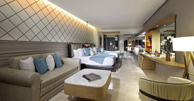 The Royal Suites Yucatan by Palladium 5* представляет собой воплощение роскоши и комфорта на берегу пленительного Карибского моря в районе Ривьера-Майа. Этот отель обладает потрясающим пляжем с мягким белым песком и невероятной тропической растительностью, которая удивляет своей первозданной красотой. Трансфер до аэропорта Тулума займет всего 30 км пути, а до известного туристического центра Плайя-дель-Кармен - 32 км. В распоряжении гостей 130 модернизированных апартаментов трех типов: Royal Junior Suites, Suites и Mayan Suites. Каждый номер прекрасно оборудован, здесь можно найти современную мебель, жидкокристаллический телевизор, удобную ванную комнату и просторный балкон. Гостям предлагается система питания «все включено», а также работает ресторан на пляже с VIP-обслуживанием. Угодить своим гостям отель умеет круглосуточно: обслуживание номеров работает без перерыва и выходных. Отель The Royal Suites Yucatan by Palladium 5* порадует своих гостей многообразием развлечений и спортивных активностей. Здесь есть бассейн с обслуживанием официантами, ресторан, уроки аэробики совершенно бесплатно, комната для игры в бильярд и дискотека по вечерам. Для любителей подводного плавания предоставляются услуги дайвинг-центра. Поклонникам активного отдыха доступны уроки моторного спорта. Для поддержания формы работает современный тренажерный зал, а также волейбольная площадка и бесплатная сауна. Важно отметить, что менеджеры нашей компании лично посещали этот отель и убедились в высоком качестве предлагаемых услуг, поэтому мы можем с уверенностью рекомендовать The Royal Suites Yucatan by Palladium для вашего идеального отдыха. Этот отель - идеальное место для тех, кто ищет спокойствие и релаксацию на живописном побережье Карибского моря.