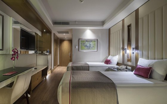 Отель Trendy Lara, расположенный в районе Лара, находится в 10 километрах от известного Тематического парка The Land of Legends. Отель предлагает такие удобства, как открытый бассейн, фитнес-центр, сад и бесплатную частную парковку. Гости могут также пользоваться общим лаунджем, террасой и баром. Для детей работает детский клуб, а для взрослых доступны услуги доставки еды и напитков, а также обмен валюты. В номерах Trendy Lara установлены кондиционеры, телевизоры с плоским экраном и сейфы. Комнаты также оснащены письменными столами, чайниками и мини-барами, а собственные ванные комнаты включают душ. Некоторые номера оборудованы кухнями с холодильниками, духовками и микроволновыми печами. Гостям предоставляются постельное белье и полотенца. Утром в Trendy Lara сервируется завтрак «шведский стол». В ресторане отеля подают блюда китайской, итальянской и японской кухонь. Также возможно приготовление вегетарианских, безлактозных и халяльных В отеле Trendy Lara, который имеет пять звезд, есть сауна, гидромассажная ванна и хаммам. Гости могут заняться настольным теннисом, дартсом и теннисом. Доступны услуги проката велосипедов и аренды автомобилей. Персонал стойки регистрации владеет немецким, английским, русским и турецким языками и всегда готов помочь гостям. Отель Trendy Lara расположен в 23 км от Водопада и заповедника Куршунлу и в 25 км от Ворот Адриана. Аэропорт Анталья находится в 13 км от отеля. Если бы вы оказались в отеле Trendy Lara, вы могли бы насладиться широким спектром удобств и услуг, исследовать местные достопримечательности и наслаждаться культурным и развлекательным опытом, который предлагает этот регион.