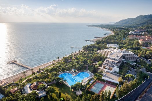 Этот великолепный отель, расположенный в живописном поселке Текирова, всего в 17 км от центра Кемера, представляет собой идеальное место для тех, кто ценит высокий уровень сервиса и предпочитает спокойный отдых. Наши менеджеры, которые имели возможность пребывать в этом отеле, подтверждают его превосходство. Занимая внушительную территорию в 186 000 м², отель представляет собой сложный комплекс, включающий основные здания, двух- и трехэтажные семейные блоки, а также комплекс двухэтажных вилл. Он предлагает своим гостям широкий выбор номеров различных категорий, включая «стандарт», «де-люкс», «семейный люкс», «королевский» и «президентский люкс». Пляж, расположенный неподалеку от отеля, имеет длину 550 метров и состоит из песка и гальки. Это место оборудовано всем необходимым для комфортного отдыха: здесь есть пирс с лестницами для спуска в воду, мостики для удобного входа в воду, шезлонги для отдыха как на пляже, так и на пирсе, а также бар, где можно заказать напитки и легкие закуски. В отеле функционируют основной бассейн и два бассейна с аквапарком для взрослых и детей. В каждой из вилл также имеется свой собственный отдельный бассейн для максимального комфорта проживающих. Питание в отеле основано на концепции «Все включено», которую поддерживают основной ресторан с открытой террасой и шведским столом и ресторан Veranda. Дополнительно на территории отеля функционируют 9 баров для любителей разнообразных напитков. В отеле уделяется большое внимание детям. Здесь функционирует мини-клуб, где дети могут весело проводить время, занимаясь рисованием, мастерством, плаванием и танцами. Для детей также предусмотрены открытый бассейн, аквапарк с 5 водными горками, парк приключений, веревочный парк и стена для скалолазания. Все услуги, предлагаемые отелем, направлены на комфорт и удовлетворение потребностей гостей. СПА-салон, фитнес-центр, поля для спортивных игр, теннисные корты - каждый найдет здесь занятие по душе. Для любителей шопинга на территории отеля есть мини-маркет, сувенирный магазин, бутик, ювелирный магазин и магазин кожи и ковров. Отдыхающие также могут насладиться прекрасными панорамными видами, исследовать близлежащий Кемер или просто насладиться комфортом своего номера, пользуясь бесплатным беспроводным интернетом.