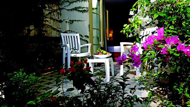 Через территорию отеля.