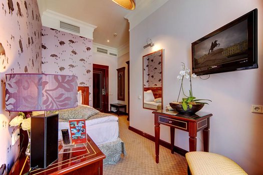 Отель "Золотой треугольник" расположен в Санкт-Петербурге, всего в 100 метрах от Невского проспекта. Здание отеля датируется XIX веком. В отеле предоставляются современные номера с видом на город, доступным бесплатным Wi-Fi и круглосуточной стойкой регистрации. Номера и люксы в отеле укомплектованы мебелью из красного дерева и оборудованы кондиционерами, телевизорами с плоским экраном и мини-барами. В ванных комнатах есть фен, тапочки и бесплатные туалетно-косметические принадлежности. Завтрак "шведский стол" подают каждое утро в элегантном зале отеля, где также возможно организовать банкеты. Для гостей отеля доступна бесплатная частная парковка. Сотрудники стойки регистрации предлагают услуги по аренде автомобилей и заказу экскурсий, а также помогают с покупкой билетов. Казанский собор находится в 500 метрах от отеля. Рестораны и развлекательные заведения расположены в нескольких минутах ходьбы. Прогулка до Дворцовой площади и Эрмитажа займет около 7 минут. До международного аэропорта Пулково можно доехать за 45 минут. Представьте, что вы останавливаетесь в этом отеле. Ваше утро начнется с разнообразного завтрака, после чего вы сможете отправиться на прогулку по историческому центру города, посетить знаменитые музеи и архитектурные памятники, которые находятся всего в нескольких минутах от вашего временного дома. Вечер вы можете провести, отдыхая в одном из многочисленных ресторанов или кафе поблизости.
