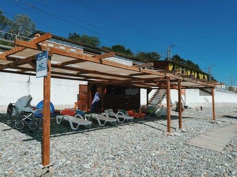 1-я линия, оборудованный, галечный пляж.